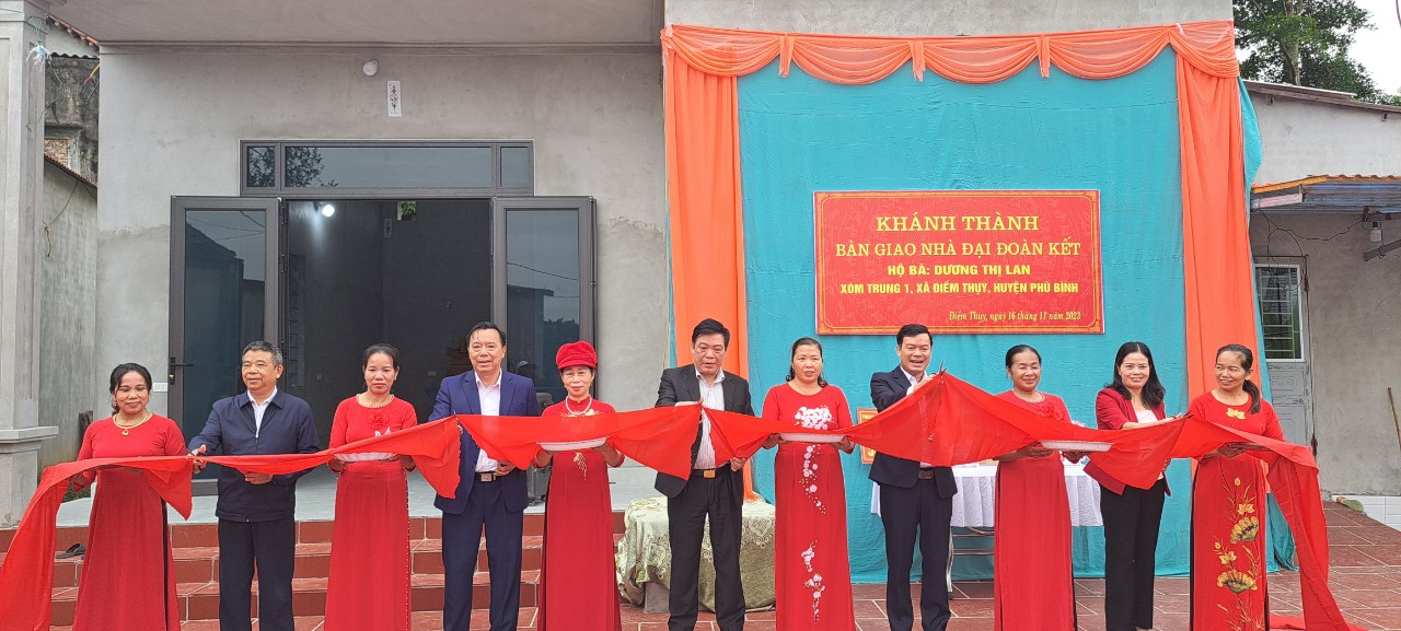 Ngày 16/11/2023 Ủy ban Mặt trận tổ quốc huyện Phú Bình phối hợp với Ủy ban Mặt trận tổ quốc xã Điềm Thụy tổ chức khánh thành và bàn giao nhà Đại đoàn kết cho gia đình bà Dương Thị Lan, xóm Trung 1, xã Điềm Thụy, huyện Phú Bình.